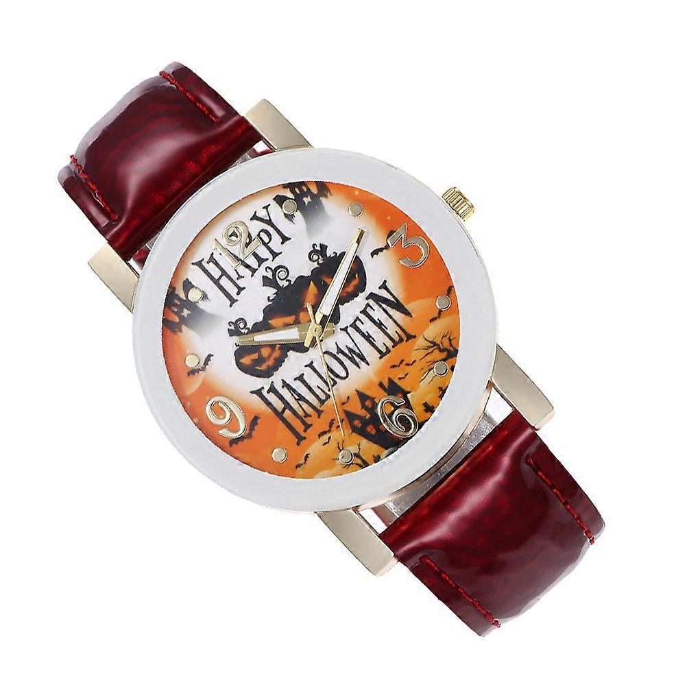 Women Halloween Quartz Watch Pumpkin Witch Castle 3Pcs Red Fashion Belt
