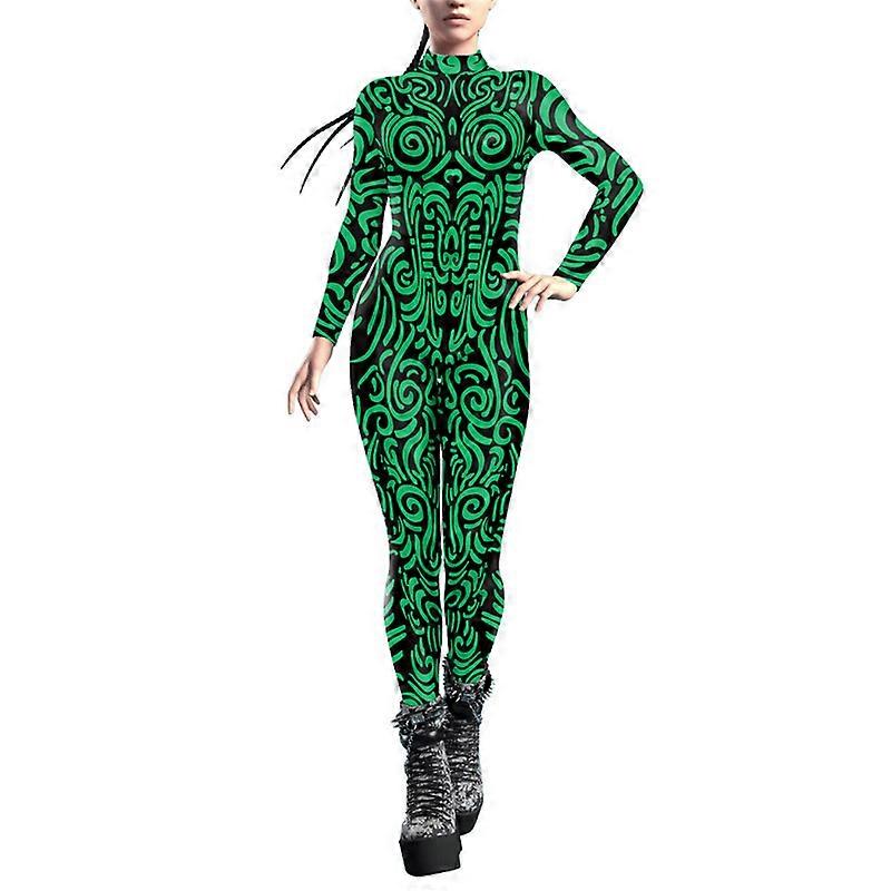 Women Halloween Party Costume 3D Print Long Sleeve Jumpsuit Outfit