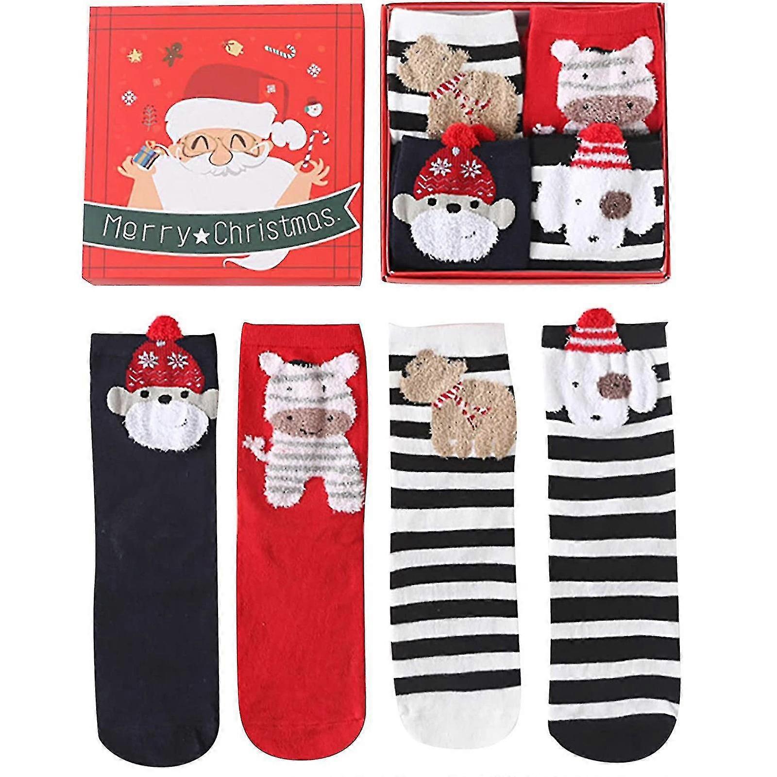 Women's Christmas 4-pair With Gift Box Fashion Christmas Cartoon Cute Socks Gift Box Mid Tube Socks