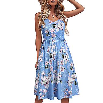 Women Girls Dress Trendy Leopard Print Midi High Waist Spaghetti-strap Floral Print