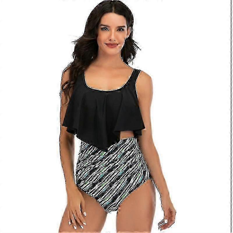 Women High Waisted Bikini Ruffle Swimsuit Flounce Pom Pom Trim Two Piece Bathing Suit lucky