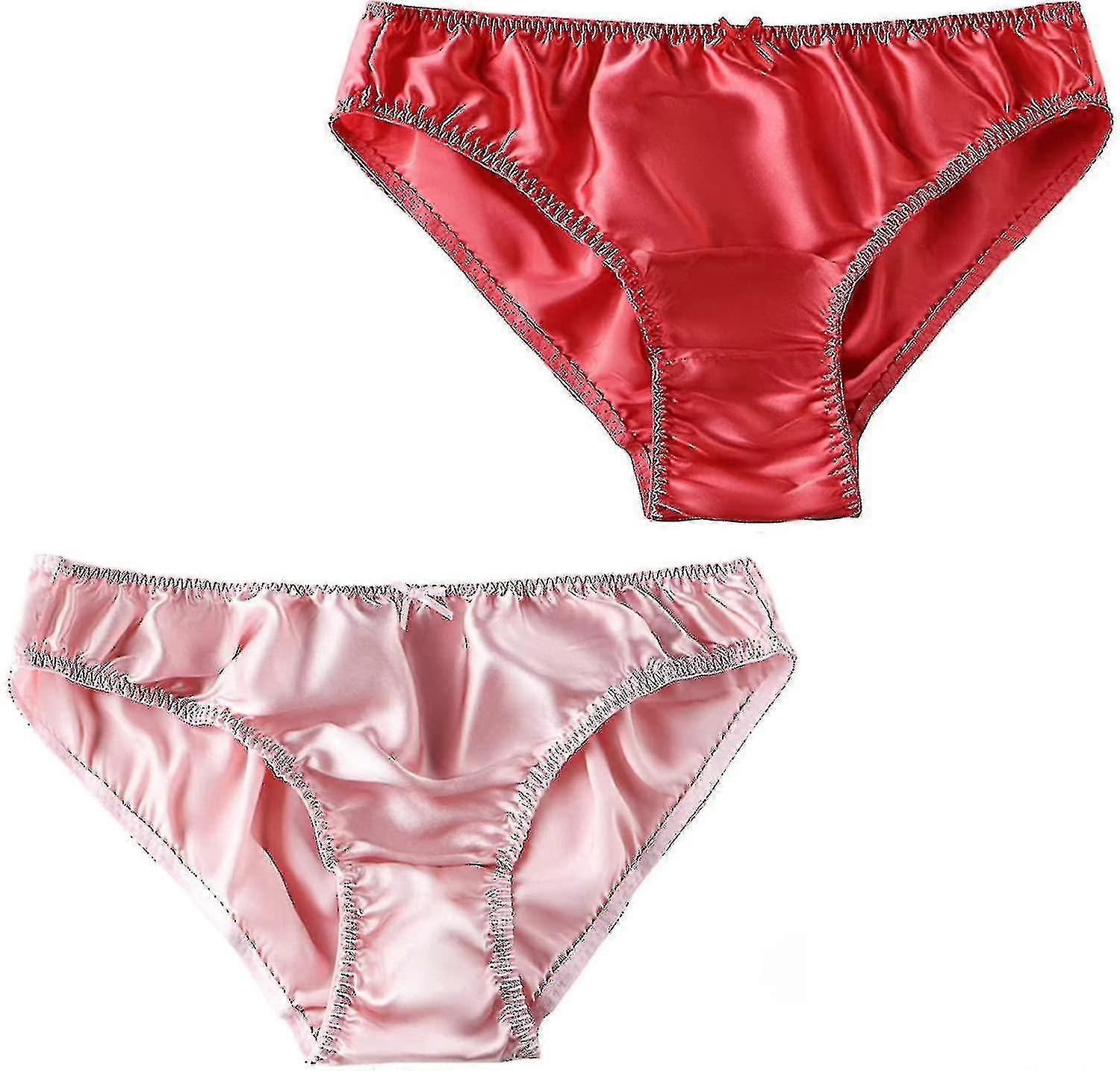 Women's Mulberry Silk Panties Silk Sexy Bikini Silk Briefs Satin Underwear 2pcs