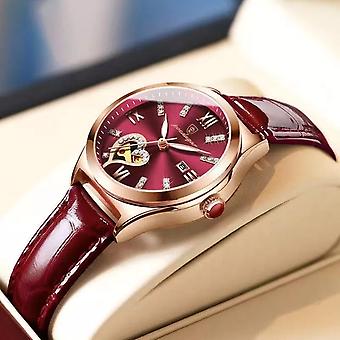Női órák Divat Bőr Romantika Red Dial Luxus Női Karóra Vízálló kvarc dátum Svájci márkájú karóra