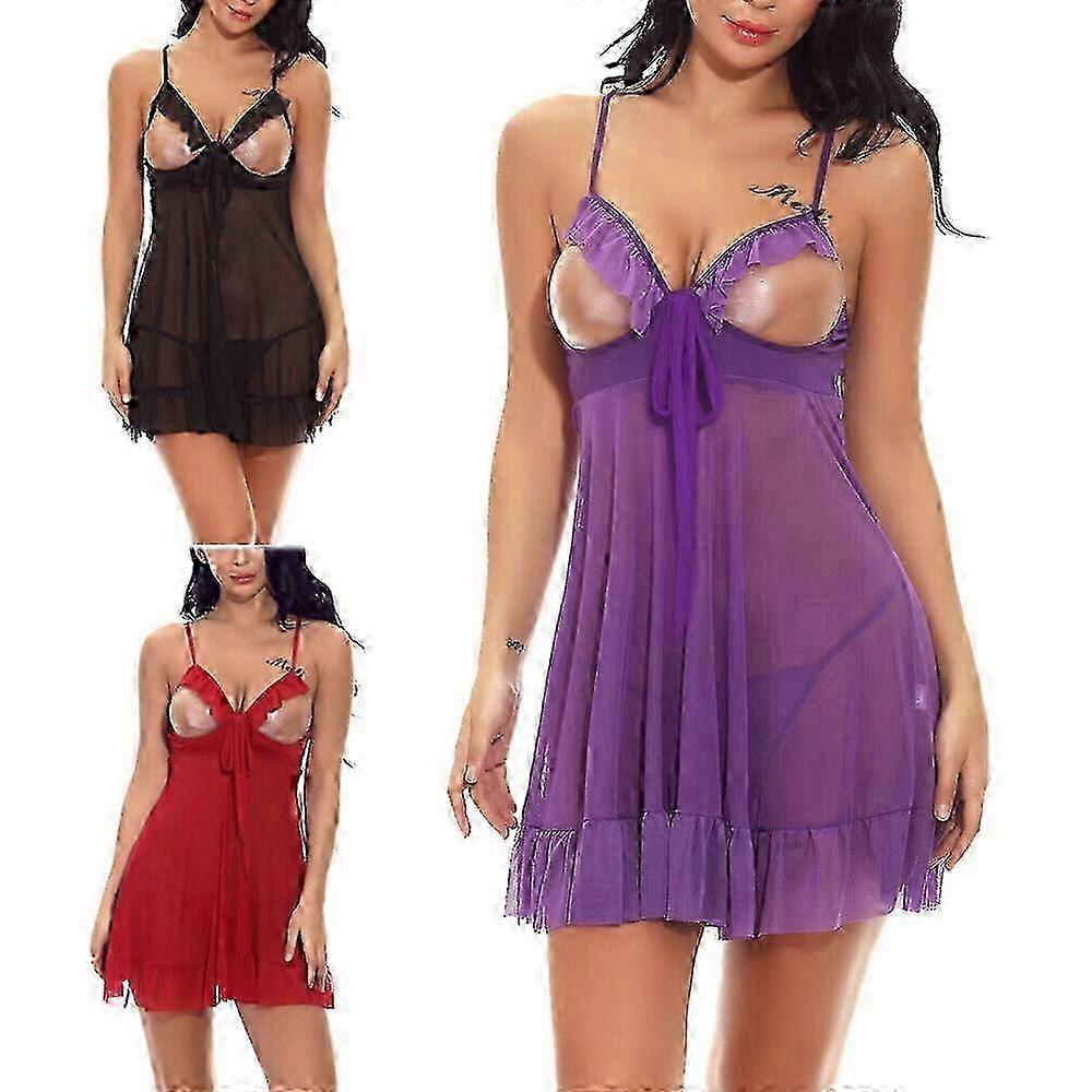 Women's Sexy Cupless Lingerie Open Cup Sleepwear Underwear Babydoll Lace Dress