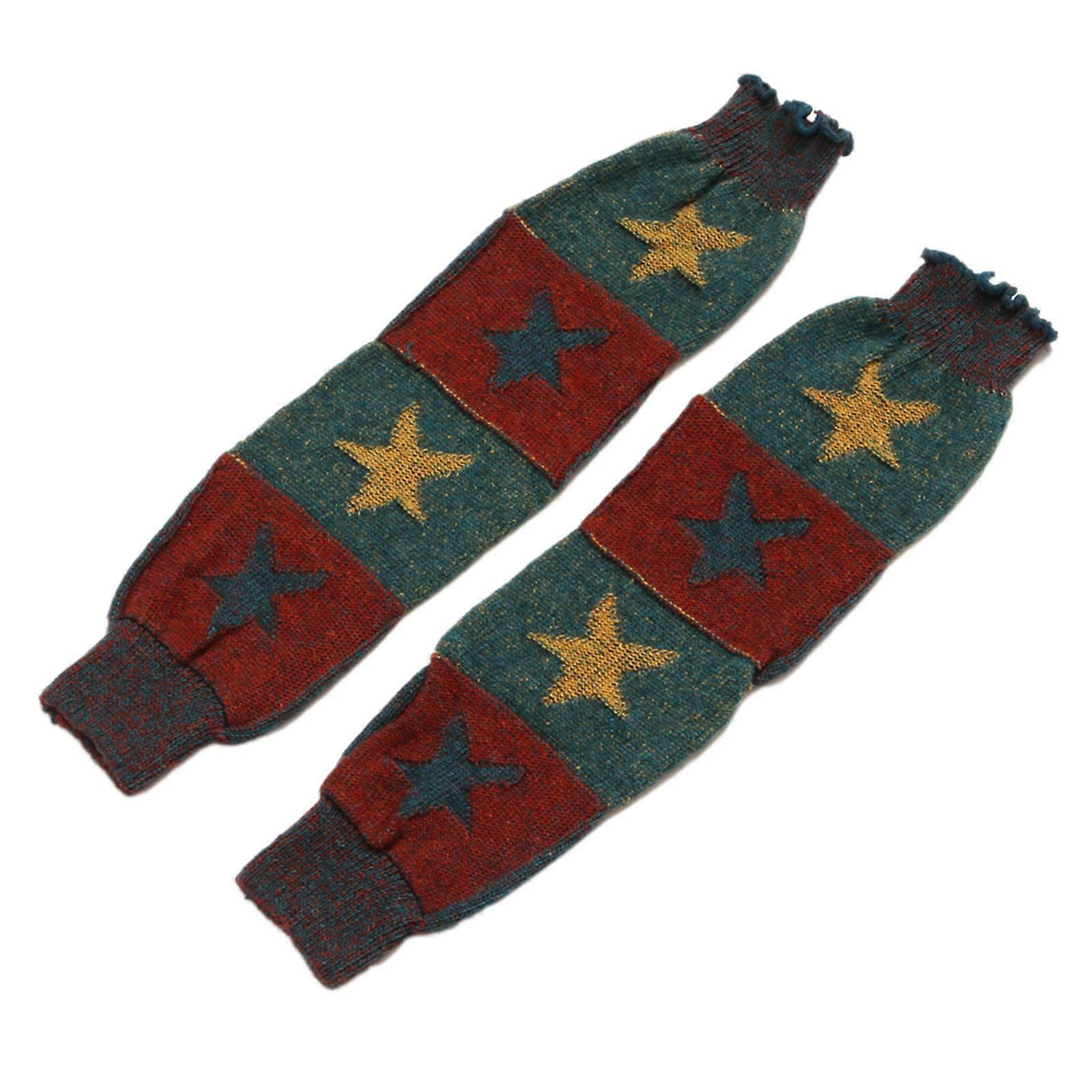 Women Winter Faux Wool Knit Leg Warmers Colorblock Striped Star Jacquard Crochet Boot Cuffs Knee High Footless Socks Ginger