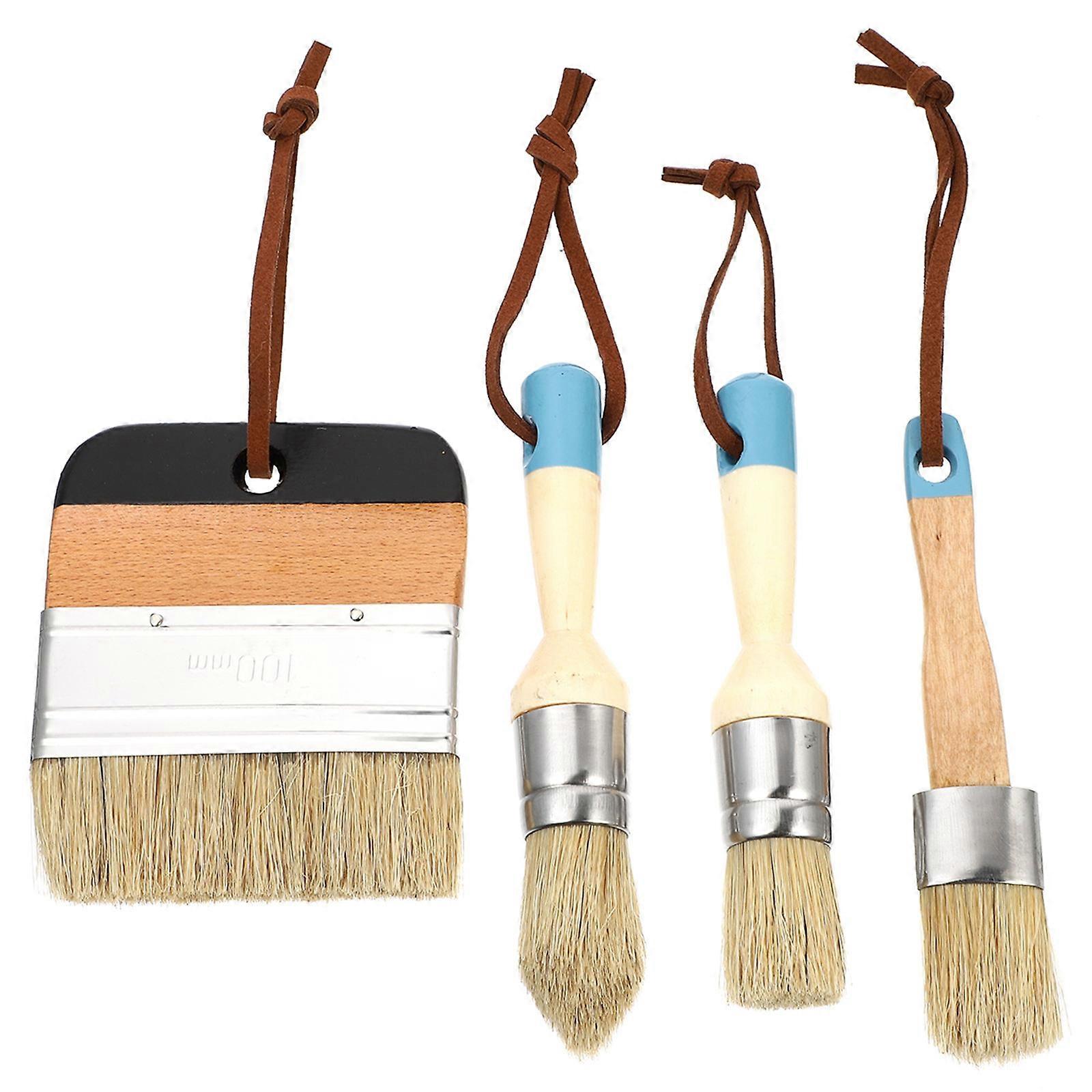 Oil Painting Brushes Home Decor Brush Wood Handle Furniture Waxing Adults 4Pcs Set