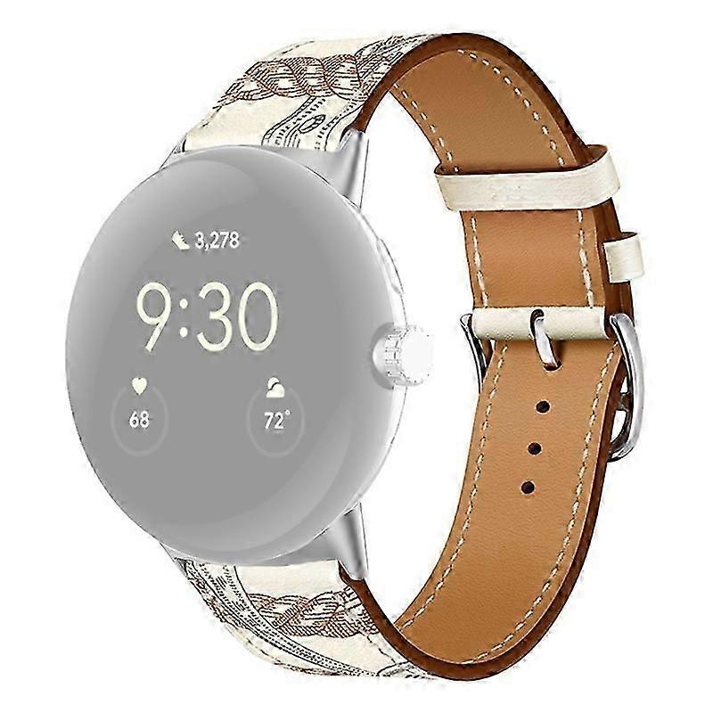 For Google Pixel Watch 3 41mm/Watch 2/Pixel Watch Genuine Leather Watch Band Stainless Steel Buckle Replacement Strap - White Printed Made of high-end genuine leather material, soft and comfortable to wear Textured genuine leather surface for comfortable hand feeling Classic pin buckle closure for easy wearing or taking off Holes on the strap make it easy to adjust the size An ideal replacement watch strap for your old, broken one Specification: Material: genuine leather Strap length: 119mm+95mm Package included: 1 x Watch Strap Other things not included