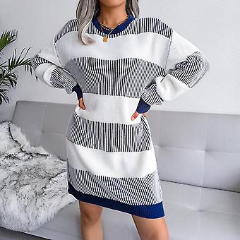 Fall Winter Women Striped Loose Sweater O Neck Long Sleeve Chic Knit Dress S-l