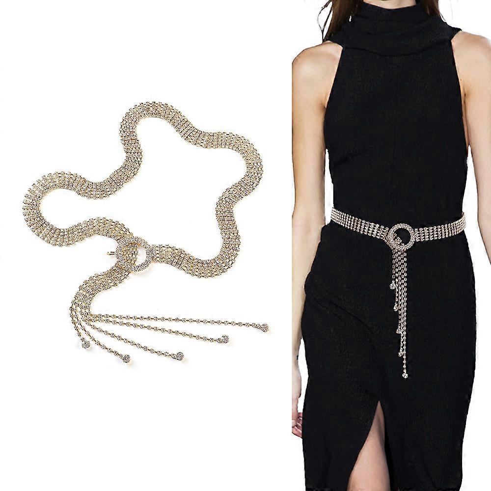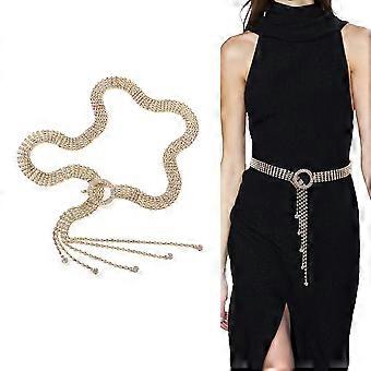 Belt, fashion tassel diamond chain belt, dress belt, double ring rhinestone full diamond chain 120cm
