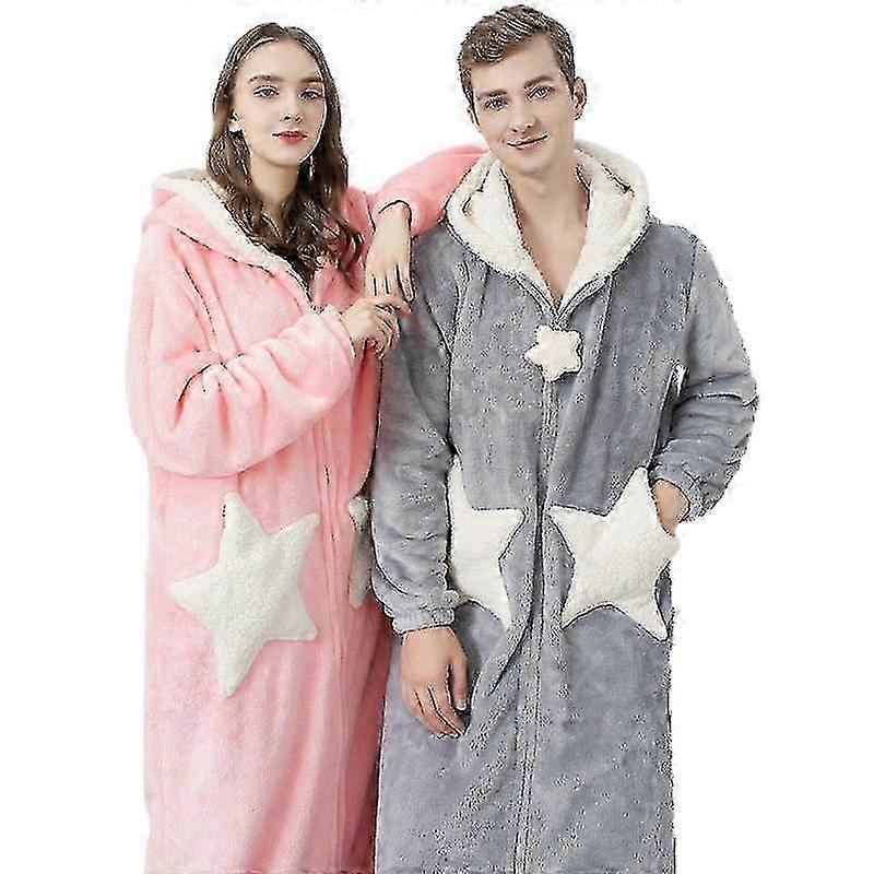 Couple Hooded Dressing Gown Nightgown Flannel Long Men Womens Bathrobe