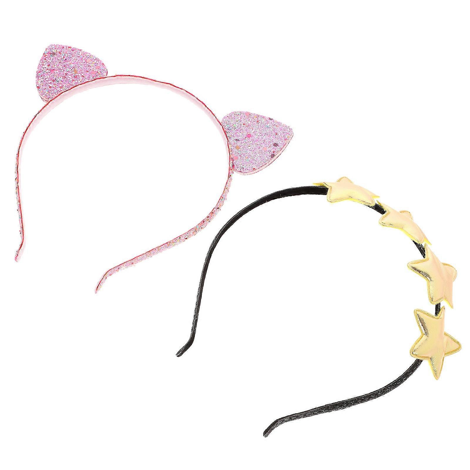 Party Headband Cute Headbands For Adults Cat Ear Design Star Pattern Glitter Material 2Pcs