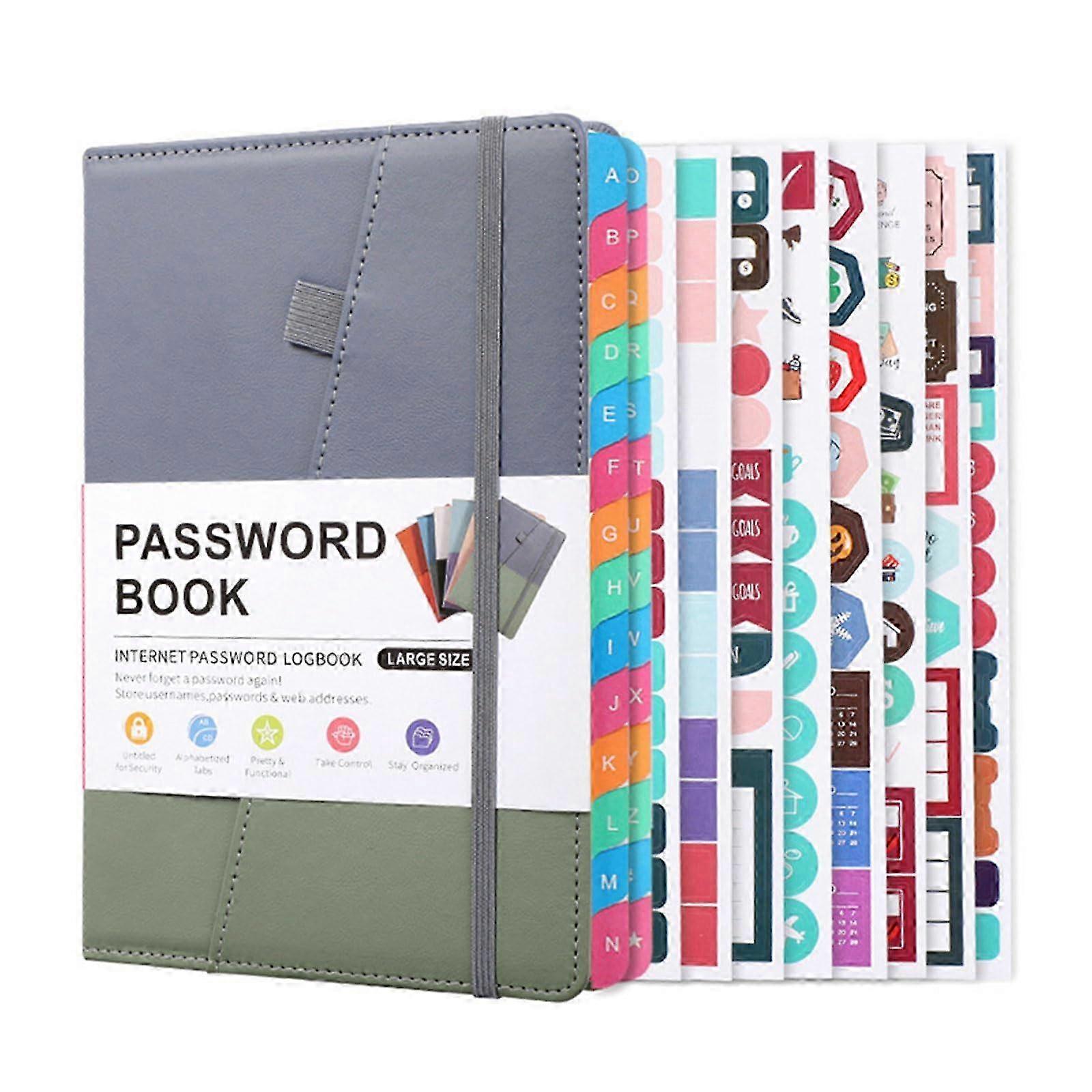 Password Book with Tabs for Internet Addresses and Passwords, Grey Password Keeper with Alphabetical Indexing System 25-26