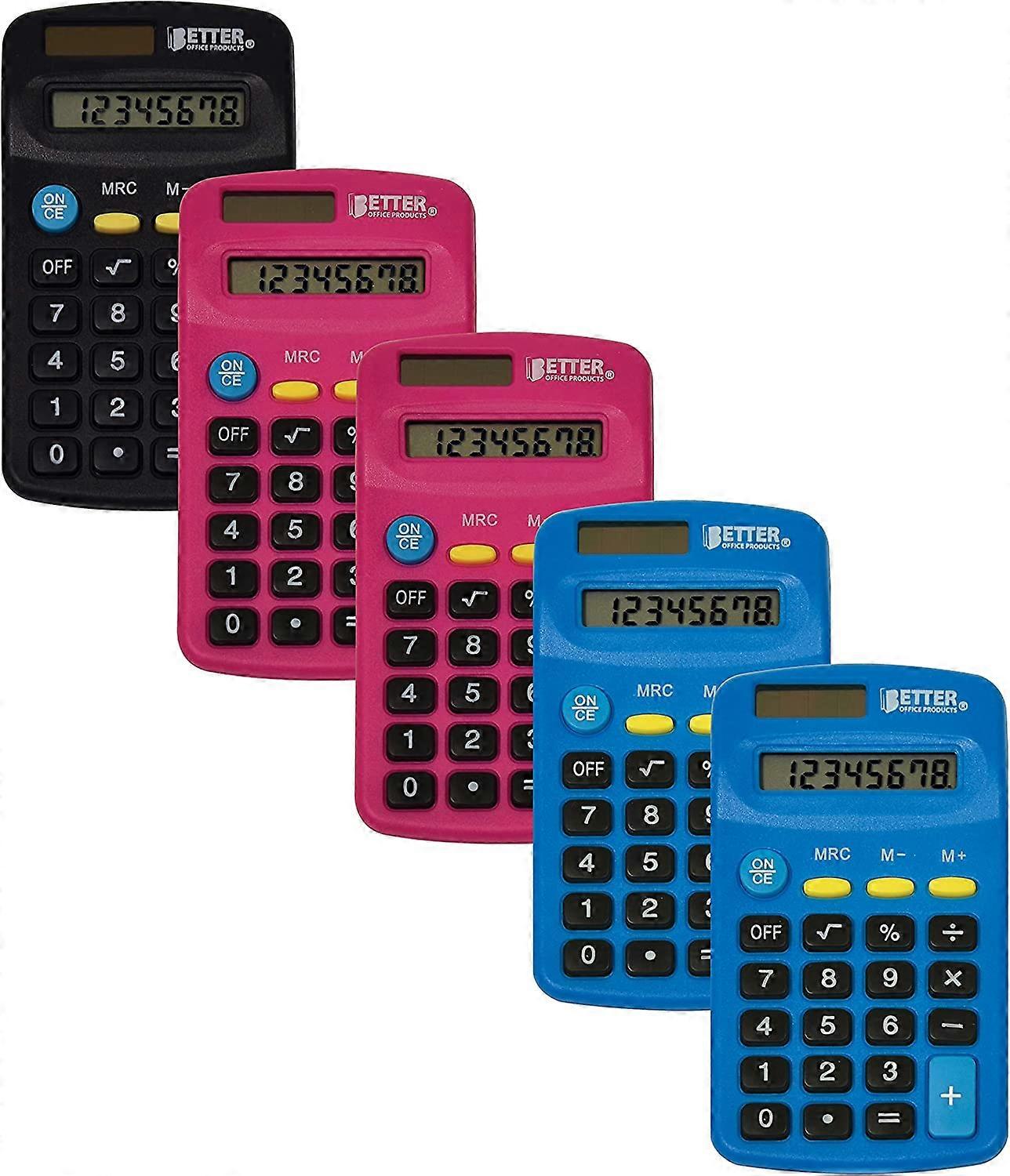Pocket Size Mini Calculators, 5 Pack, Handheld Ang 8-Digit Display, by ucts, Standard Function,