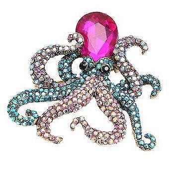 Octopus Pin Brooch Purple Head Sea Life Metal Alloy Tentacle Winding Crystal Jewelry Brooch