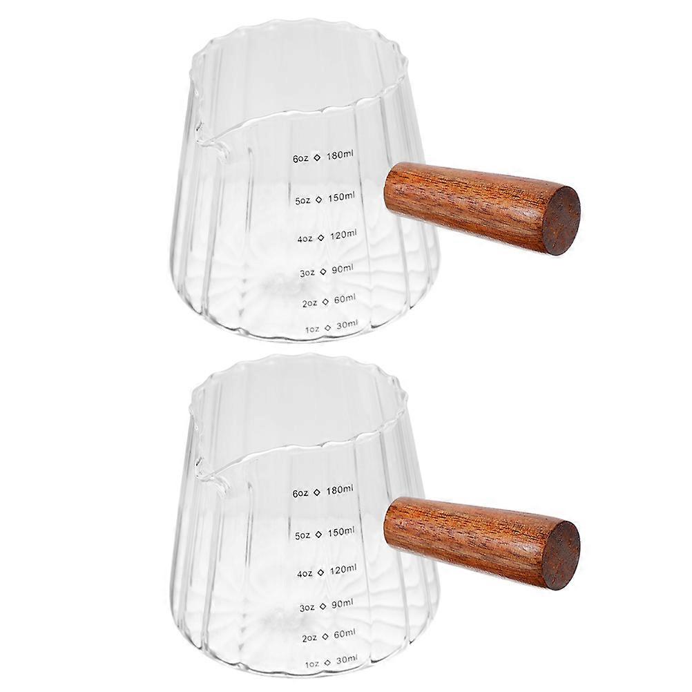 Practical Cylindrical Measuring Milk Pitcher With Comfortable Wooden Handle Ideal For Commercial Use 10 Pcs