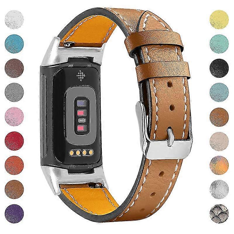 Premium Genuine Leather Adjustable Strap Watch Band for Fitbit Charge 6/5 Coffee