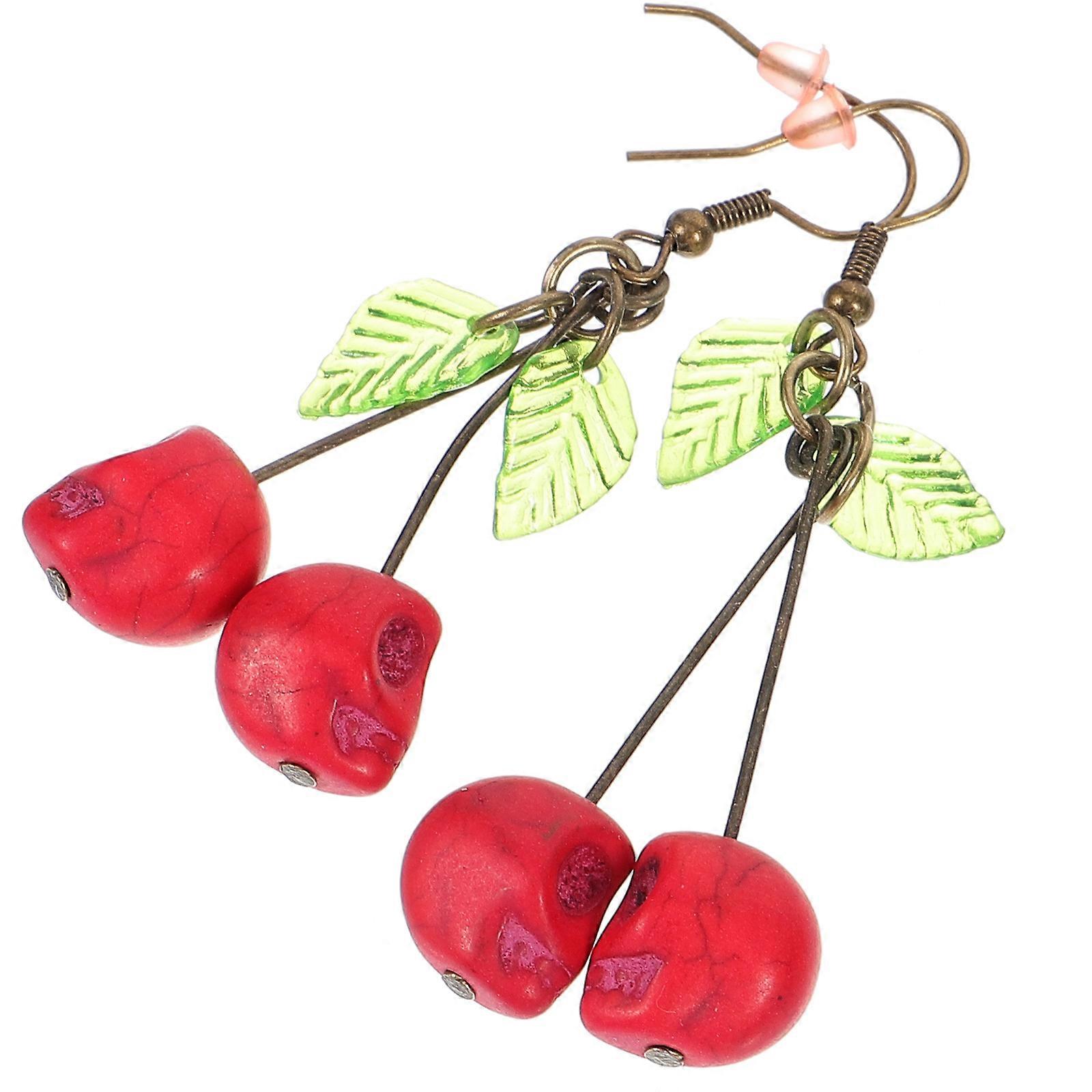 Punk Style Drop Shape Cherry Earrings 5 Pairs Fashion Accessory Ideal For Women Halloween Occasions Red