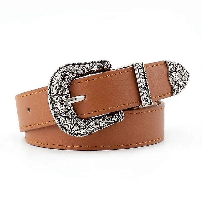 Retro Metal Pin Buckle Women Belt Vintage Carved PU Leather Gothic Waist Belt Ladies Casual Jeans Pants Waistband Strap