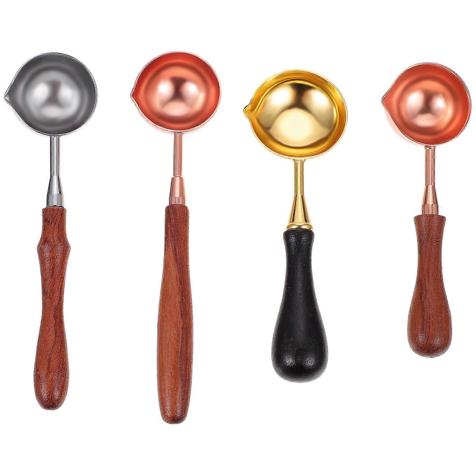 Copper Wax Melting Spoon Wood Handle for Sealing Stamp 4Pcs Set