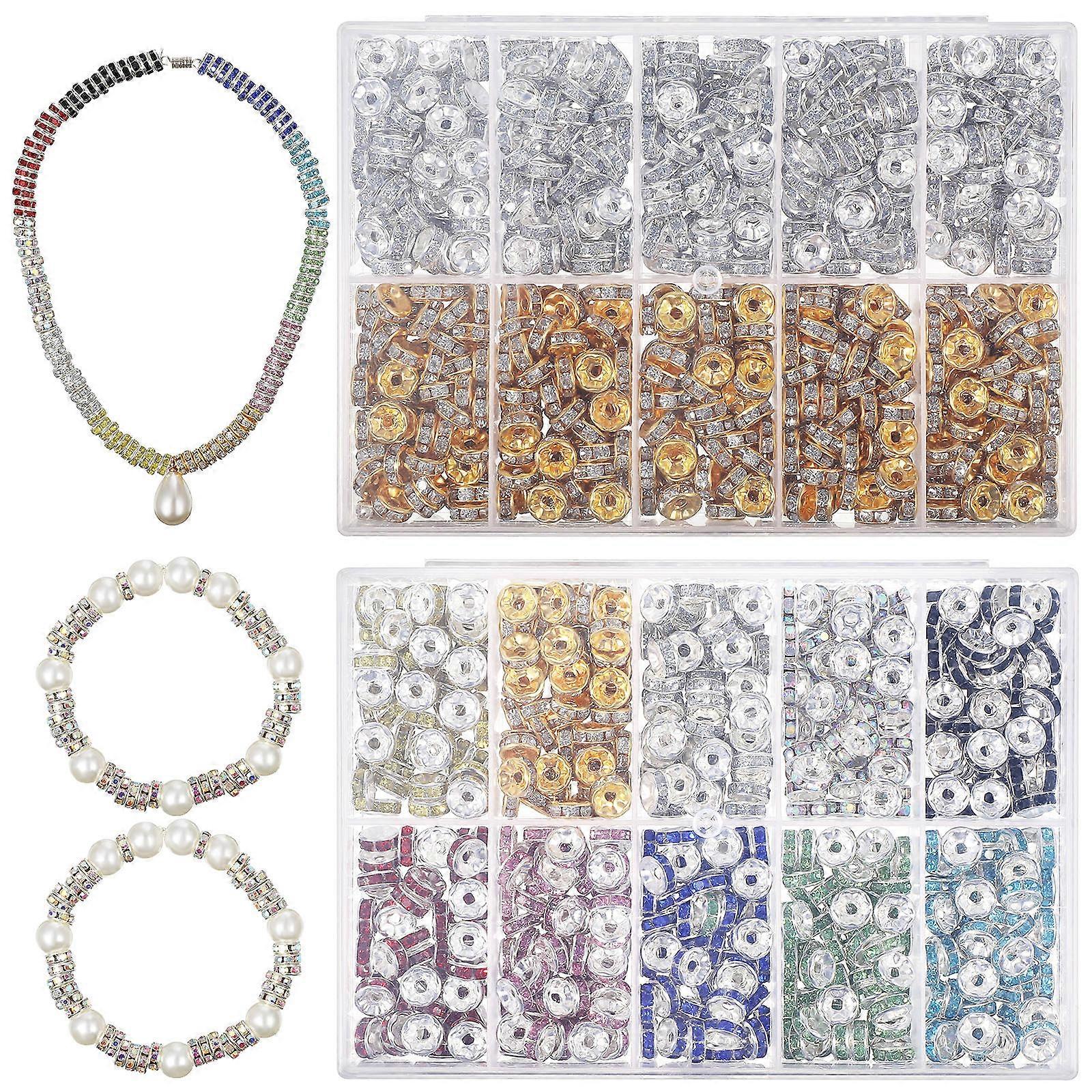 Rhinestone Spacer Beads for DIY Use Assorted Color Polished Surface Scratch Resistant 1400pcs