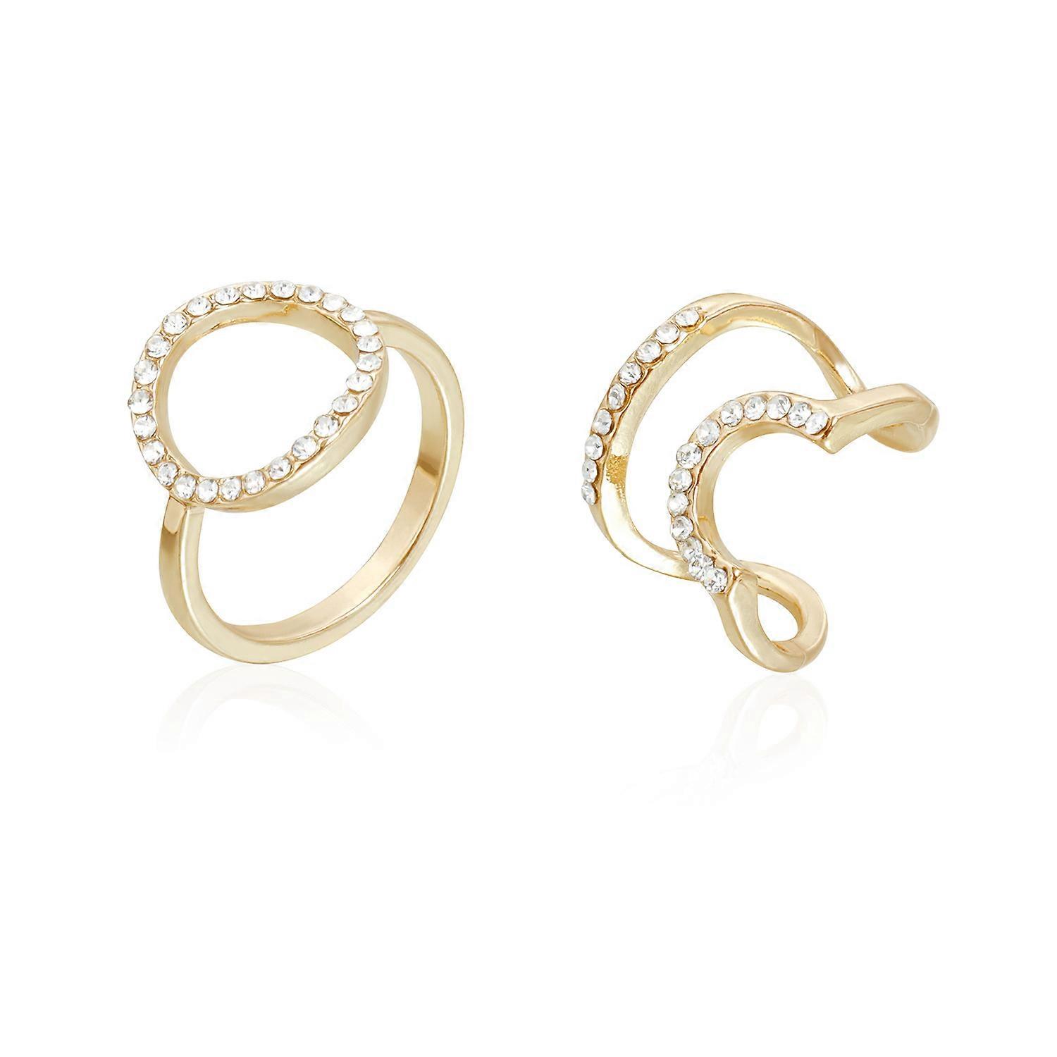 Ring, Women's Exaggerated Geometric Open Adjustable Rhinestone Inlaid Metal Texture INS Style