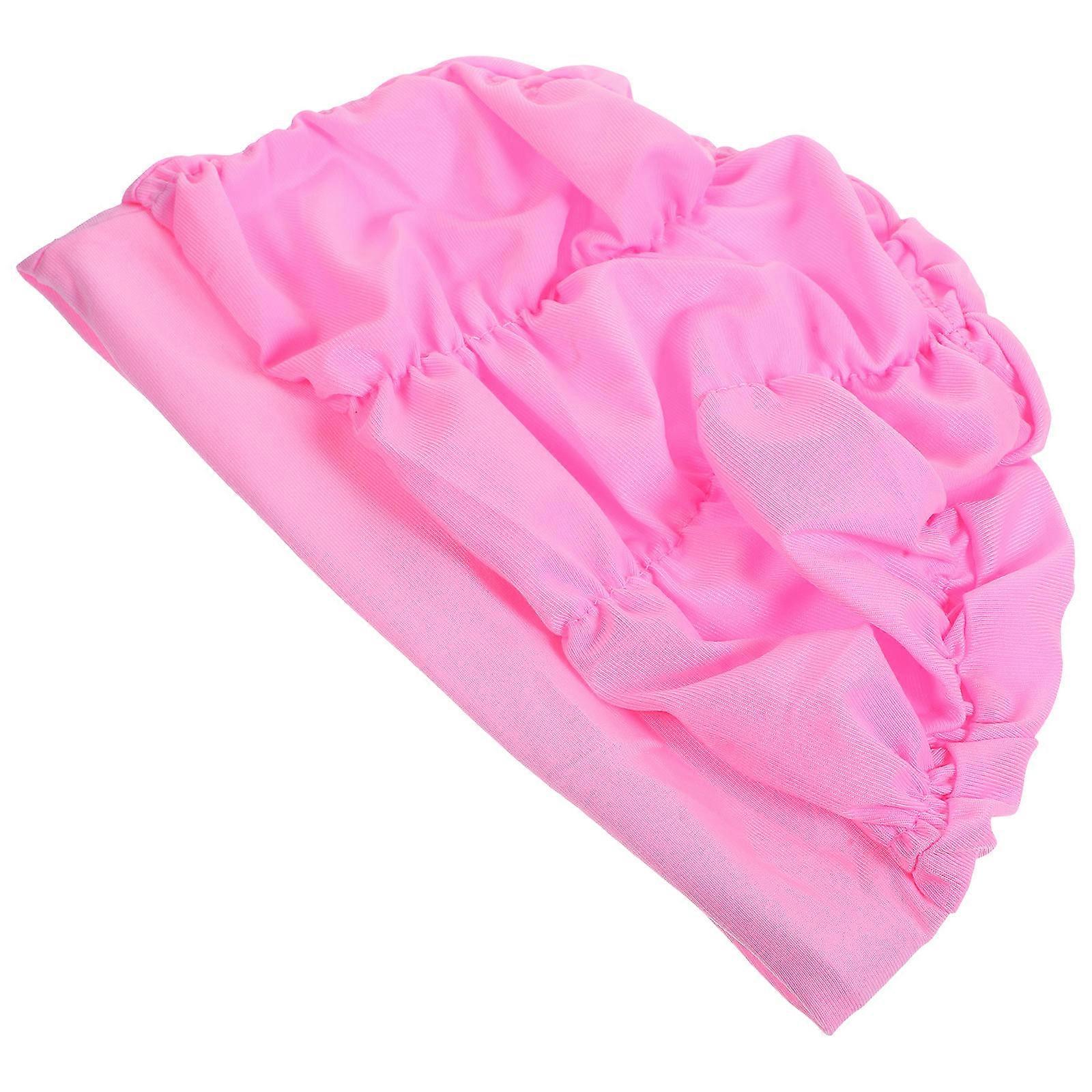 Pink Swimming Cap for Women Wrinkle Hair Protection 5Pcs Pack