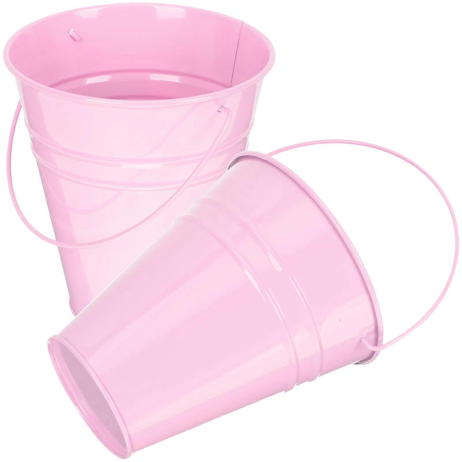 Pink Iron Flower Bucket Flowerpot for Storage Use 8Pcs Vintage Metal Plant Pot