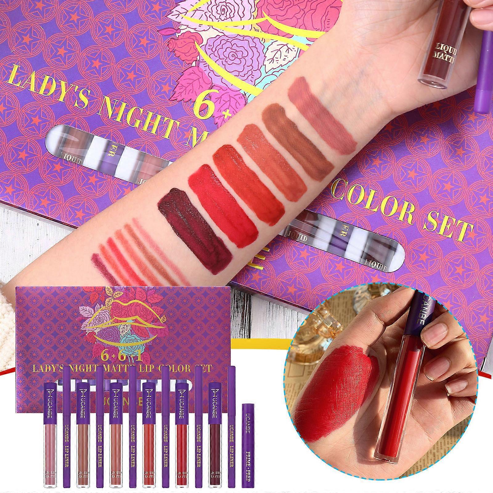 Lipstick Makeup Set 6 Matte Liquid Lipsticks 6 Lip Liner 1 Lip Makeup All-in-