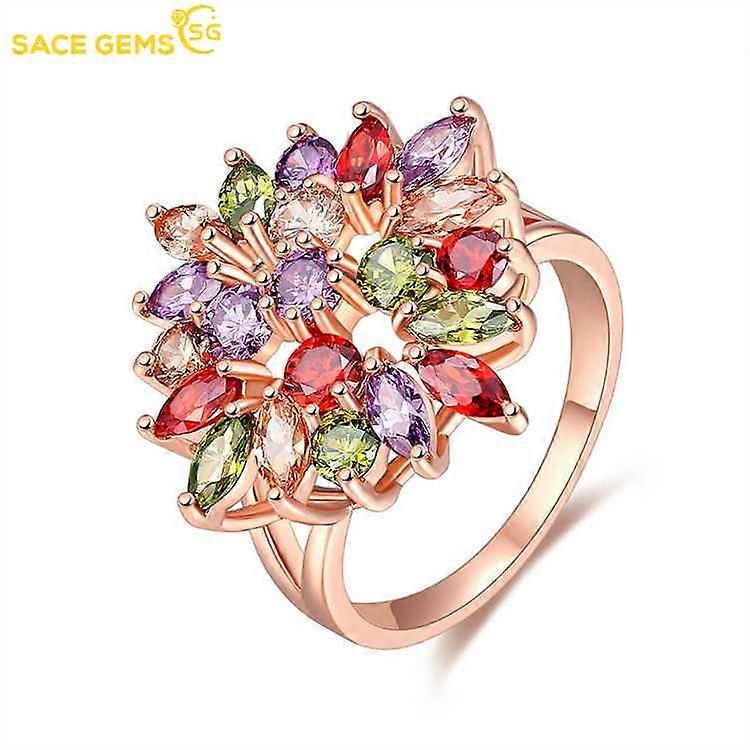 SACE GEMS Classic Luxury Multicolor Zircon Ring Ladies Jewelry Wedding Promise Party Gift