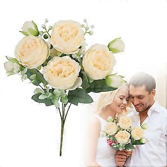 Mesterséges miniatűr perzsa rózsacsokor, 5 fejű műrózsacsokor, elegáns rózsacsokor asztaldísznek, esküvőkre és lakberendezésre