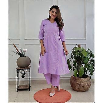 Női pamut Chikankari Angrakha stílusú Kurti szett indiai pakisztáni tunika ruha VF-1865