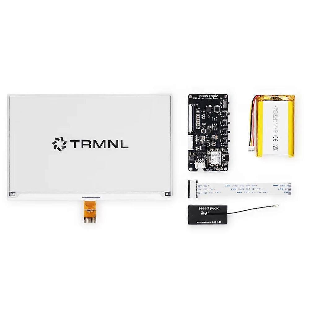 for The TRMNL 7.5inch (OG) DIY Kit is a versatile e-ink development solution. Fully compatible with for the TRMNL BYOD ecosystem. With for the TRMNL BYOD Access, you can boast over 375 ready-to-deploy plugins and choose from 8 layouts to build the perfect dashboards for your daily and even commercial applications without coding. Seamlessly integrate with Home Assistant to display real-time data like weather or energy use, or tap into for Arduino's thousands of projects. Perfect for DIY enthusiasts building e-ink dashboards, smart home interfaces, or creative digital signage-offering low-power efficiency and endless customization. This kit doesn't include the enclosure, but we provide three beautiful enclosure designs, available open-source on Printables, Thingiverse, and Maker World. Note: This open source kit is sold without an enclosure. All pictures showing enclosures are for demonstration purposes only! Compatible with for TRMNL (for TRMNL Access Required) 7.5inch e-Ink Display for Your Custom Dashboard This kit features a 7.5inch monochrome (black and white) e-Ink display with 800x480 resolution, capable of presenting comprehensive information simultaneously. From sensor data to weather forecasts and full-page calendars, all the information that you need is available at a glance. Moreoever, the glare-free e-Ink display ensures clear readability in any lighting condition while reducing eye strain. Energy-Efficient Design with Low-Power Consumption Powered by a 3.7V 2000mAh rechargeable Li-ion battery, it operates for up to 3 months on a single charge in deep sleep mode (6-hour refresh interval). It's DIY kits, needs to finish by yourself. (The housing in the picture is not included) Color: White Material: plastic Package Contents: 1 * 7.5-inch 800x480 monochrome e-ink display 1 * XIAO ESP32-S3 PLUS driver board 1 * 2000 mAh rechargeable battery 1 * FPC exte
