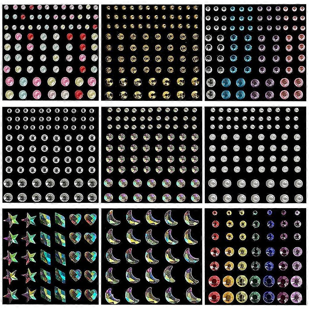 Self-Adhesive Rhinestone Face Jewels For Craft Enthusiasts Makeup Enhancement 6X6Cm Assorted Color 9 Sheets