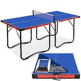 SereneLife Midsize Portable Ping Pong Table Set with Net, Clipper, Post 6’ x 3’ Foldable Space Saving Design, Blue