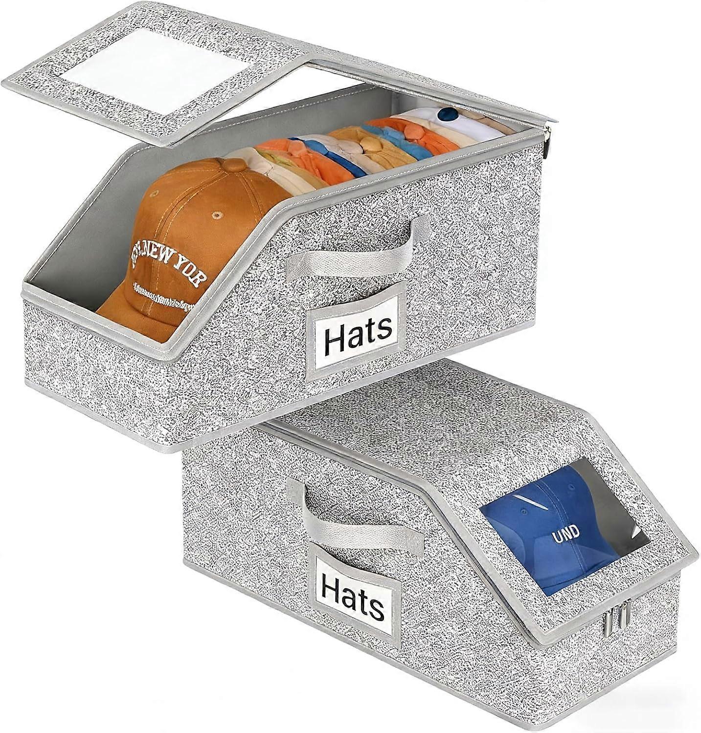Stackable Hat Storage Boxes (2 Pack), Holds 24 Caps, Clear Window, Compatible with Snapback & Fitted Hats