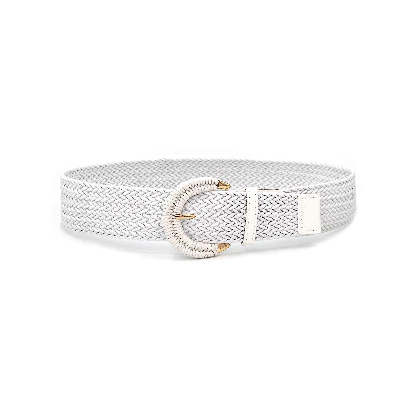 Stylish Semicircular Clasp Braided Waist Belt No Hole Adjustable Bohemian Waistband for Beach Parties Daily Wear White