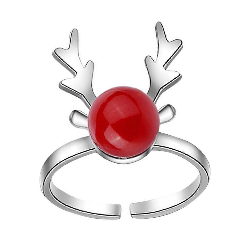 Stylish Finger Ring Mini Antler Decoration for Christmas 3Pcs Red