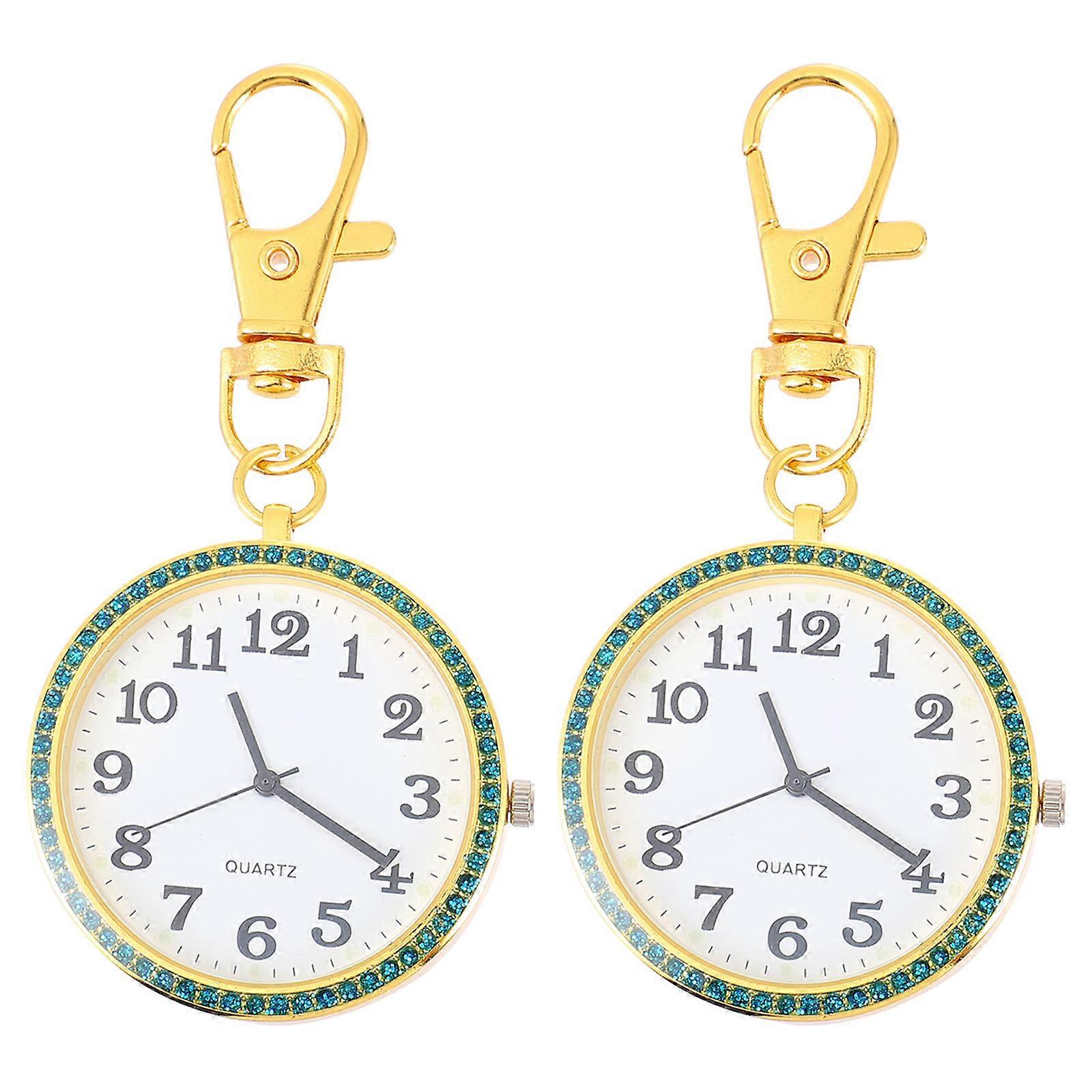 Rhinestones Pocket Watch Clip on Pocket Watch Key Ring 6Pcs