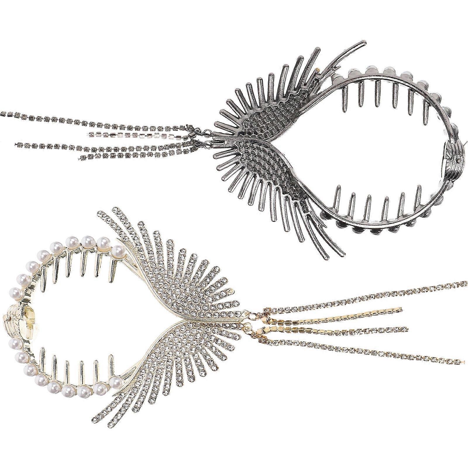These ponytail buckle hair clips are made of alloy and diamond materials, durable and lightweight, comfortable to use. Wing ponytail holder with tassel chain is elegant and make you more attractive in gorgeous and style. Features -Color:Assorted Color -Material:Alloy, diamond -Size:17.00X8.00X0.50cm/6.68X3.14X0.20in - The hair clips with diamond for women, enough quantity and bright colors to meet your daily use. - Ponytail buckle hair clip can fit for different hair styles, curly hair, straight hair, high ponytail. - Our hair clips accessories are easy to use, are easy and convenient for you to decorate. - Diamond ponytail clips are very charming for hair decor, make you dazzling like eyes of center among the crowds. - The hair bun holders are adorned with and shiny diamond, , you will be more dazzling when using. Package list: 6 x Ponytail Buckle Hair Clips