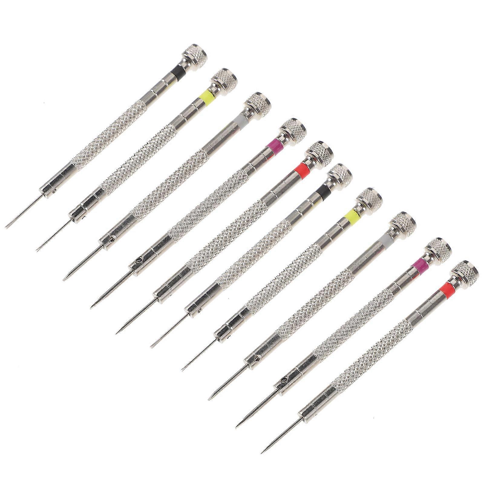 Designed for eyeglasses repair, this eyewear screwdriver can make glasses or watch repair more convenient. Made of for long time and durable use. It has a simple design, but very practical in use, giving you a . Also can be a good gift choice for your friends, they will like it. Features -Color:Assorted Color -Material:Steel -Size:9.20X0.80X0.80cm/3.62X0.31X0.31in - screwdriver set contains various sizes to meet your daily needs. - The watch screwdriver is made of high grade stainless steel, the tip is made of high-carbon steel, not easy to wear, rust-proof, the handle is non-slip texture, easy to grasp. - The screwdriver repair kit with swivel is simple and practical, you can quickly identify the size of screwdriver you need through the color-coded cover, and easily operate by turning the handle cover and pressing down. - Screwdriver tool designed for watch repairs, glasses repairs, watch battery replacements, watch strap adjustments, removal of watch bracelet screw links, jewelry making, laptops, circuit boards, cameras and small precision instrument repairs. - The screwdriver repair kit is perfect for watch repairs, watch battery replacements, removing watch bracelet screw chains, eyeglass repairs, jewelry work, and electronics repairs and more. Package list: 8 x 0.8 slot screwdrivers 8 x 1.0 slot screwdrivers 8 x 1.2 slot screwdrivers 8 x 1.4 slot screwdrivers 8 x 1.6 slot screwdrivers