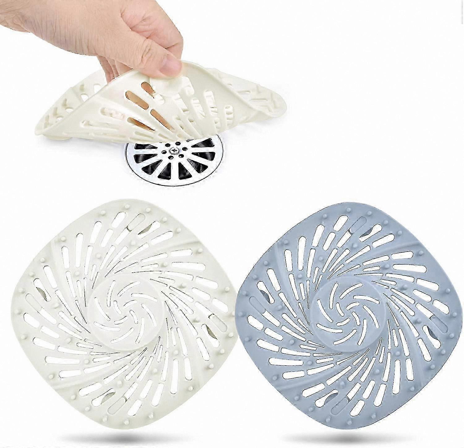 Silicone Shower Drain Hair Catcher, 2-Pack (White & Blue)