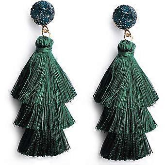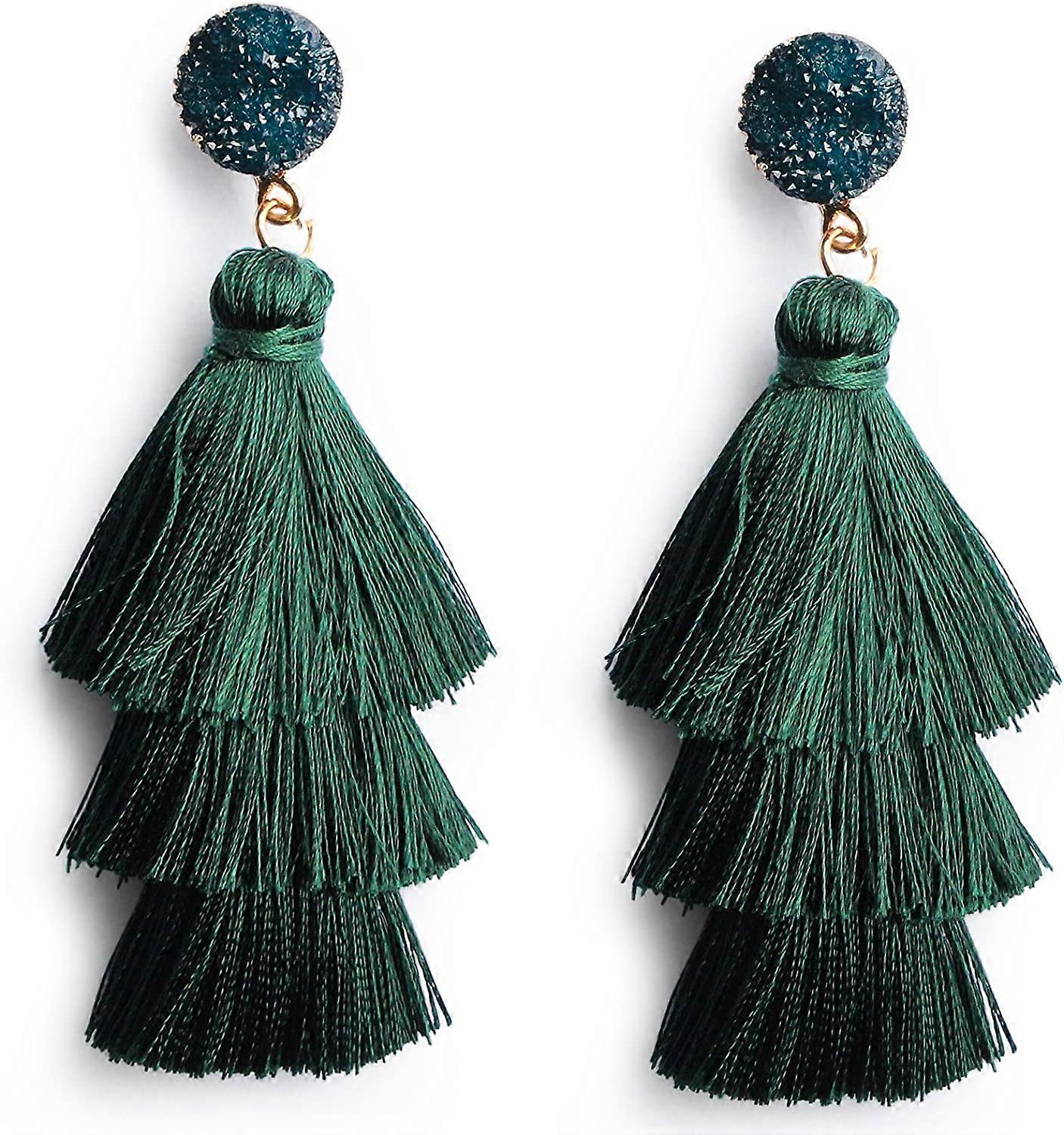 Colorful Layered Tassel Earrings Bohemian Tiered Tassel Druzy Stud Dangle Drop Earrings for Women Teen Girls Birthday Christmas Valentines Day Gift