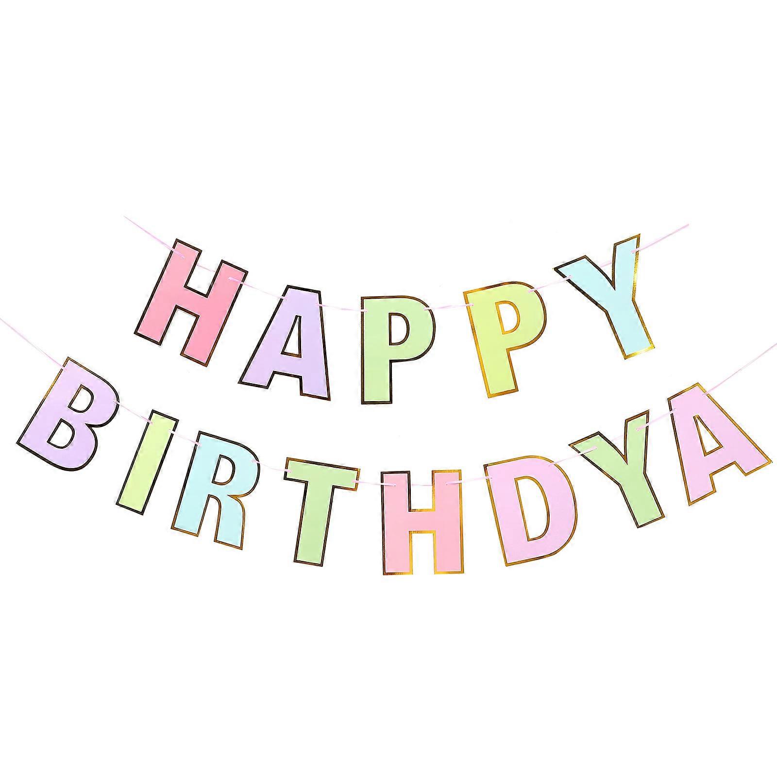 Birthday Hanging Banner Macaron Paper Decoration for Party 2Pcs Colorful