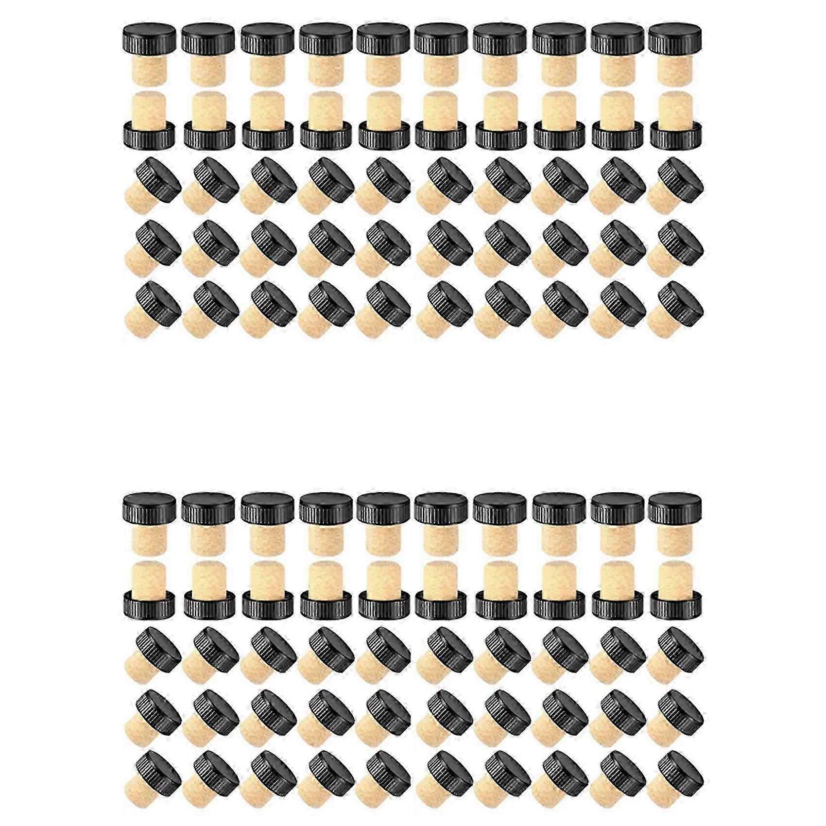 T-Shaped Cork Stoppers with Plastic Tops for Wine Bottles, 100 Pack Natural Wooden Wine Corks