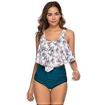 Tankini fürdőruha csíkos nyomtatás magas derekú haskontroll 2 részes fürdőruha-