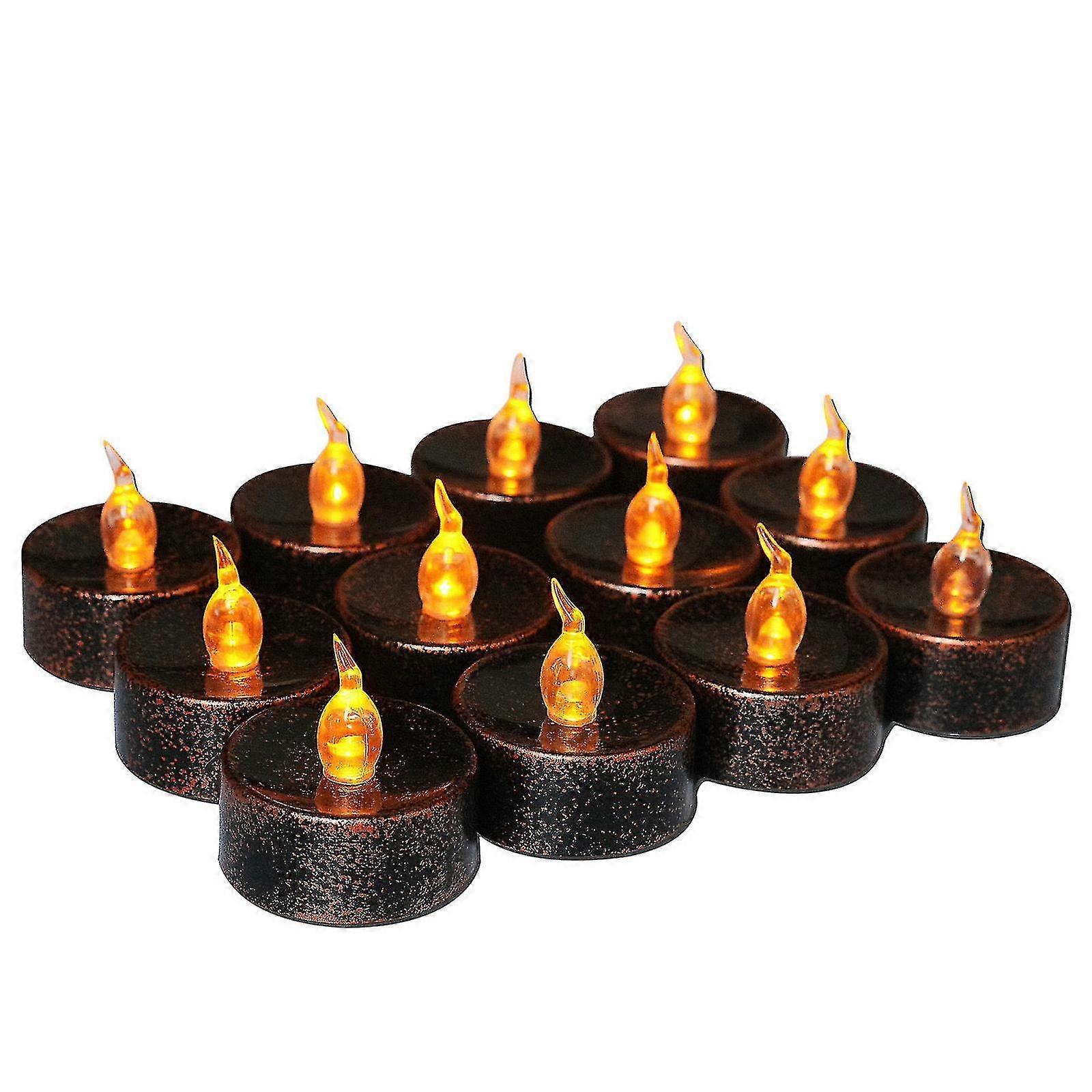 New 12Pcs Battery Operated Dripping Flameless Tealight, Realistic Black Candles, Led Votive Tea Lights For Wedding, Party, Halloween, Christmas, Home