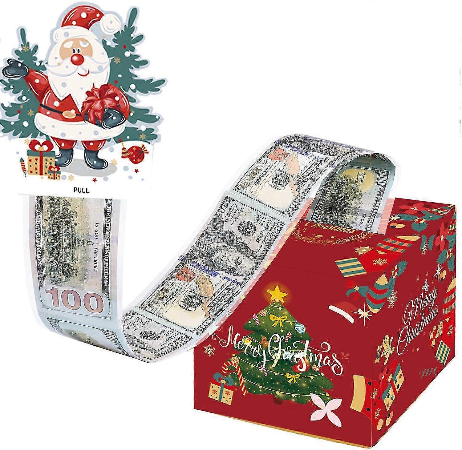Holiday cash gift box with pull-out surprise card for Christmas parties