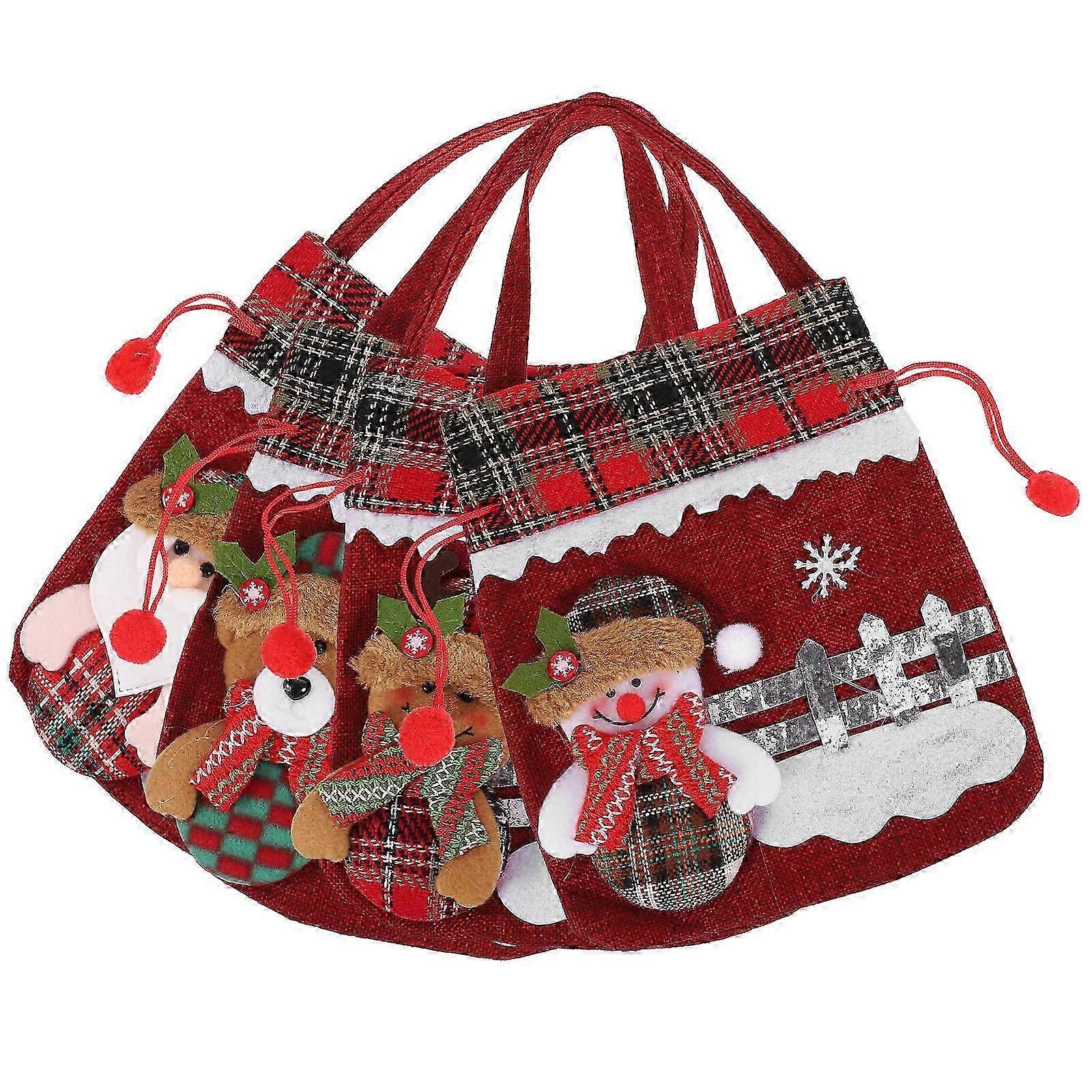 Festive Drawstring Bags 4Pcs Christmas Themed Gift Wrap For Families Rectangular Design 23.5X21Cm