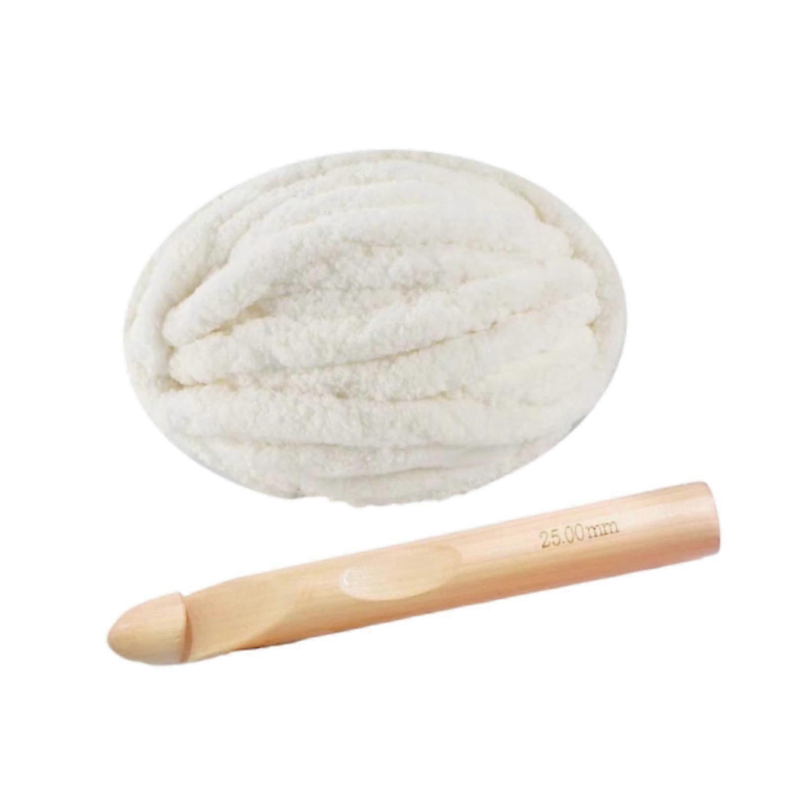 Chunky Yarn with Crochet Hook Thick Blanket Yarn for Crocheting Bags Sweater White