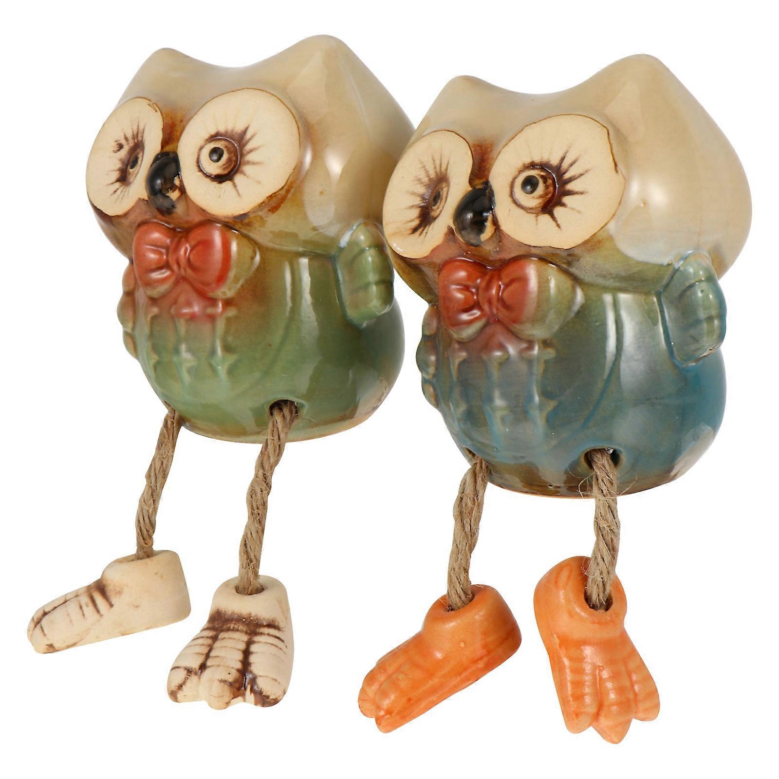Assorted Color Ceramic Owl Doll for Decoration 6Pcs Hanging Feet Ornaments
